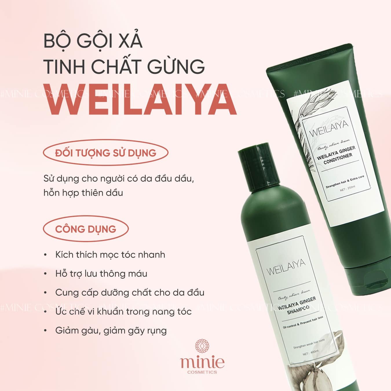 – Nuôi dưỡng tóc bóng mượt, bồng bềnh, tràn đầy sức sống, giảm tình trạng bệt dính tóc