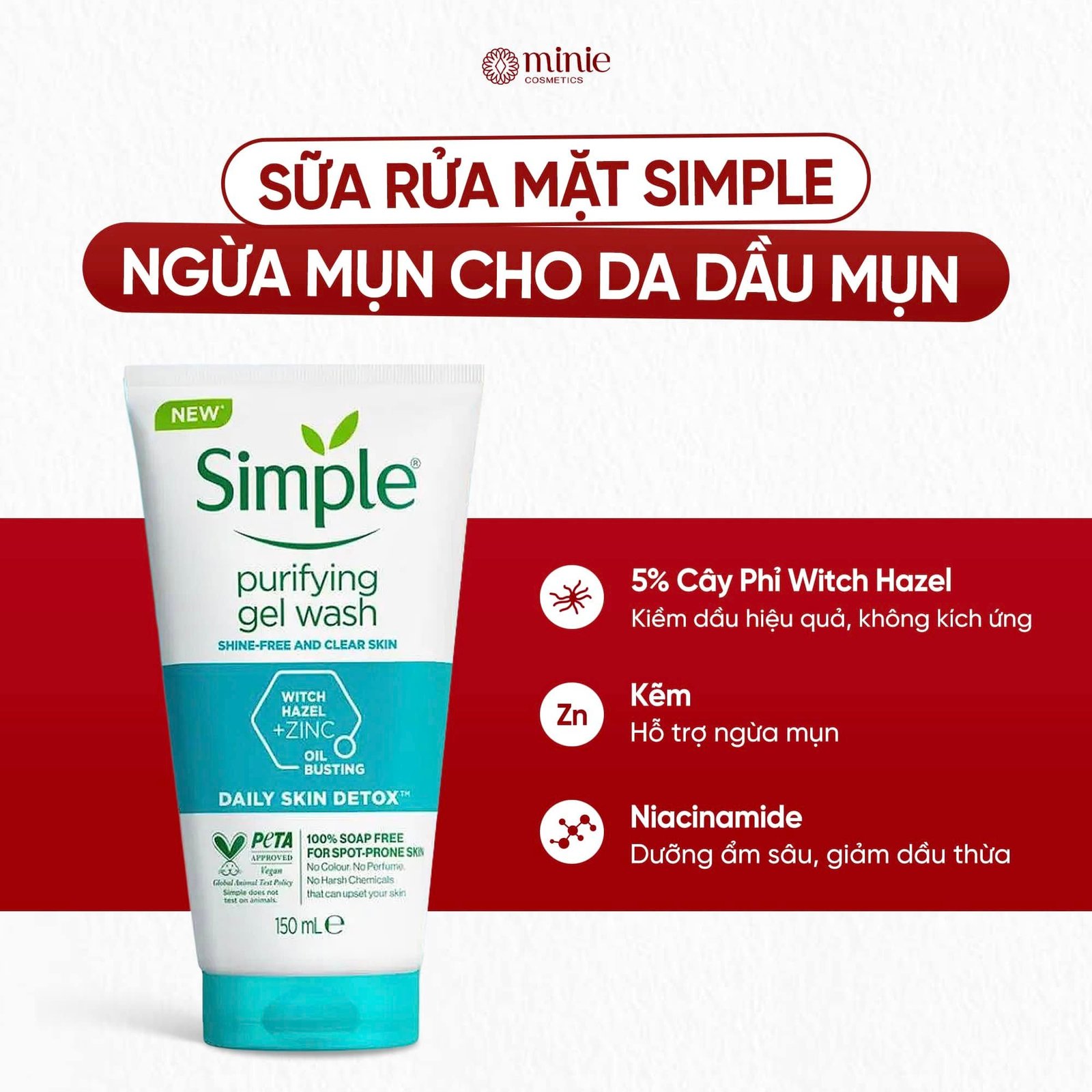 1. Sữa Rửa Mặt Simple Thanh Khiết, Giảm Bóng Nhờn 150ml Purifying Gel Wash