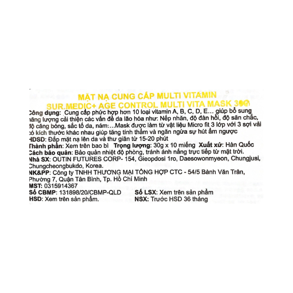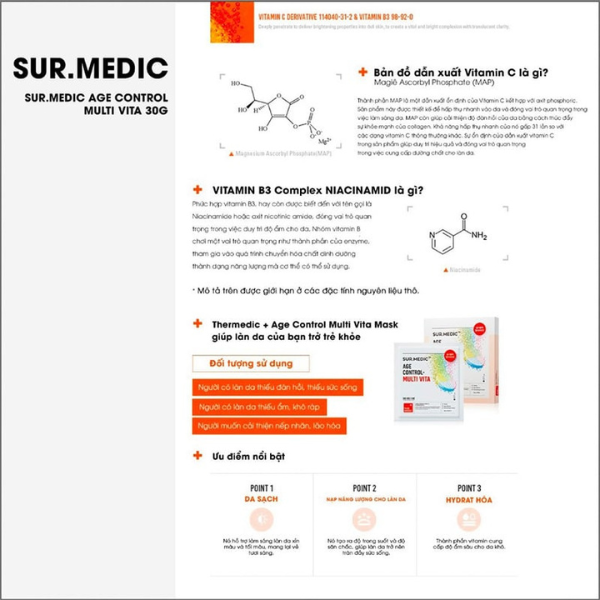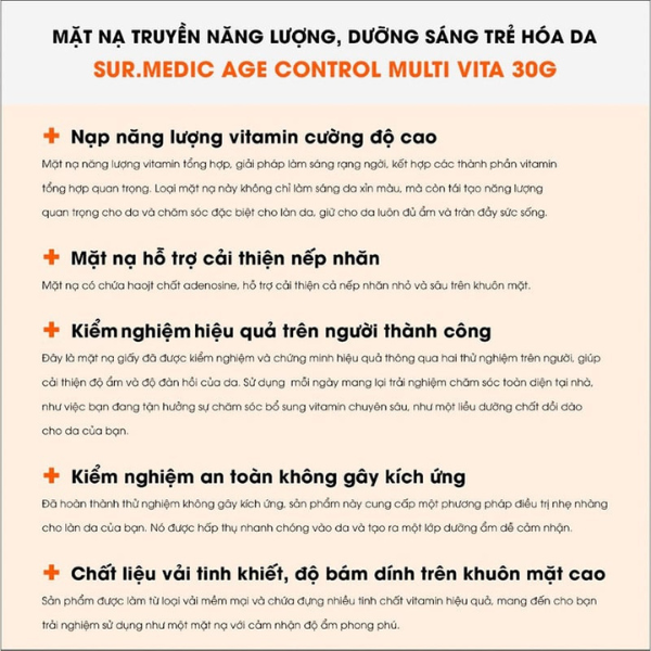 1. Mặt Nạ Cung Cấp Multi Vitamin, Hỗ Trợ Dưỡng Sáng Da Sur.Medic+ Age Control-Multi Vita Mask 30g