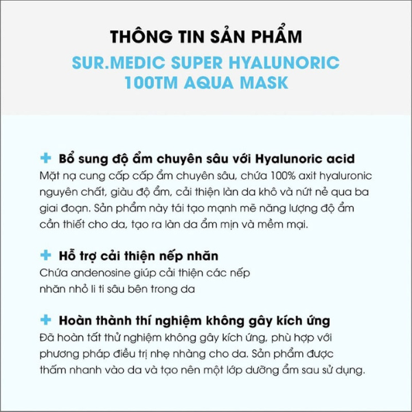 Đặc điểm nổi bật mặt nạ Sur.Medic+ Super Hyaluronic 100™ Aqua