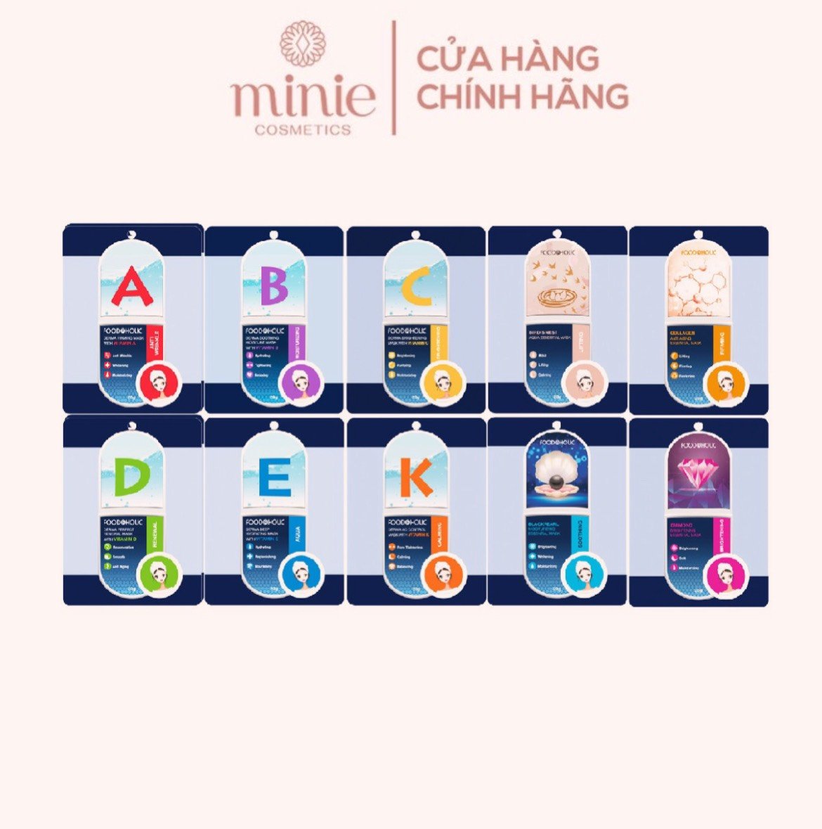 - Hiện tại nhà Minie Cosmetic đã có đủ 10 loại cho khách yêu lựa chọn