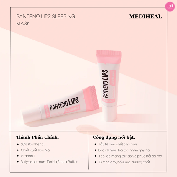– Mặt Nạ Ngủ Môi, Làm Môi Ẩm Mượt, Căng Bóng Mediheal Pantenolips Sleeping Mask hiện nay đã có mặt tại Miniecosmetic.vn. Sản phẩm có khả năng làm mềm và giữ ẩm cho môi, giảm thiểu tối đa tình trạng khô căng, nứt nẻ ở môi.