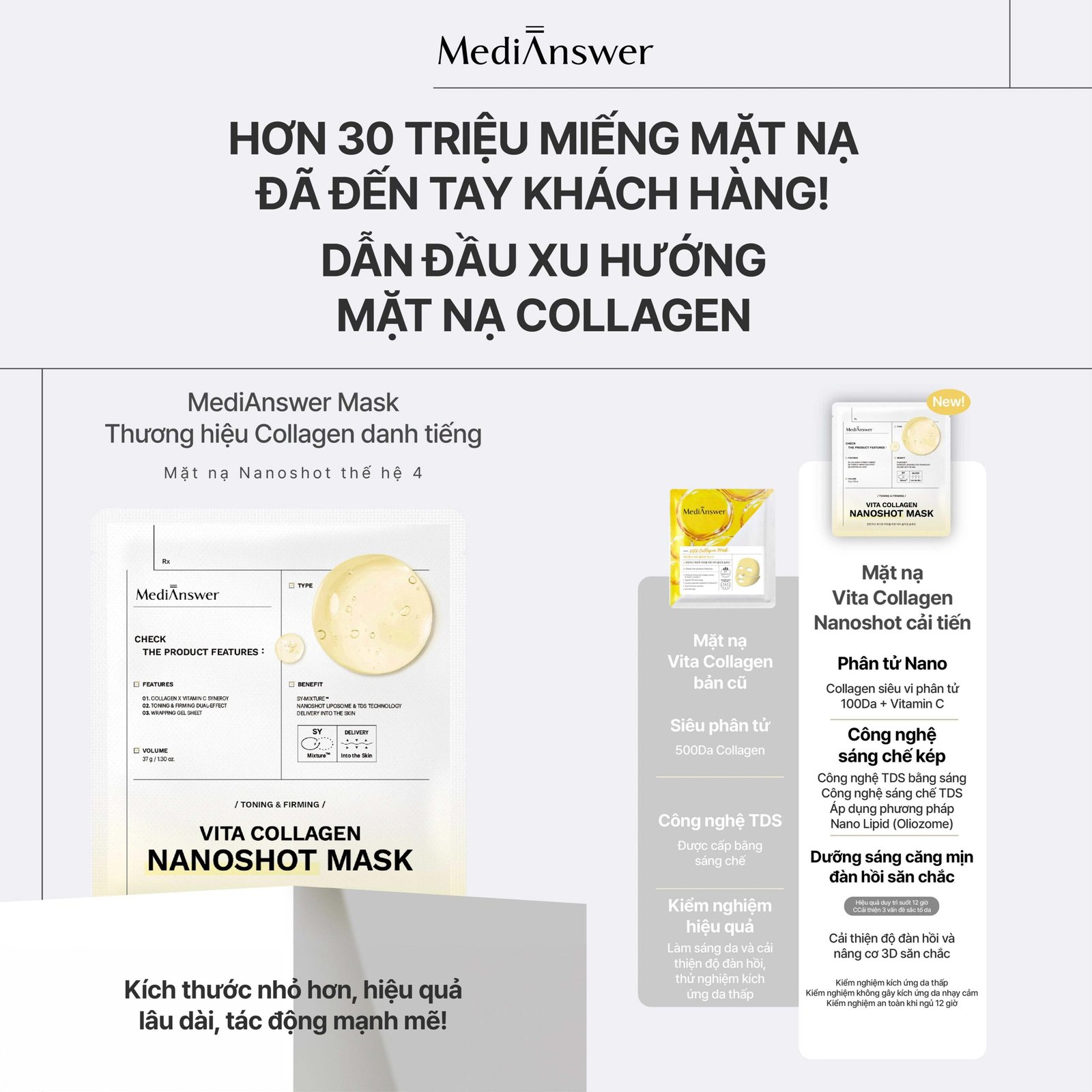 • Công nghệ TDS tăng khả năng thẩm thấu collagen vào da.