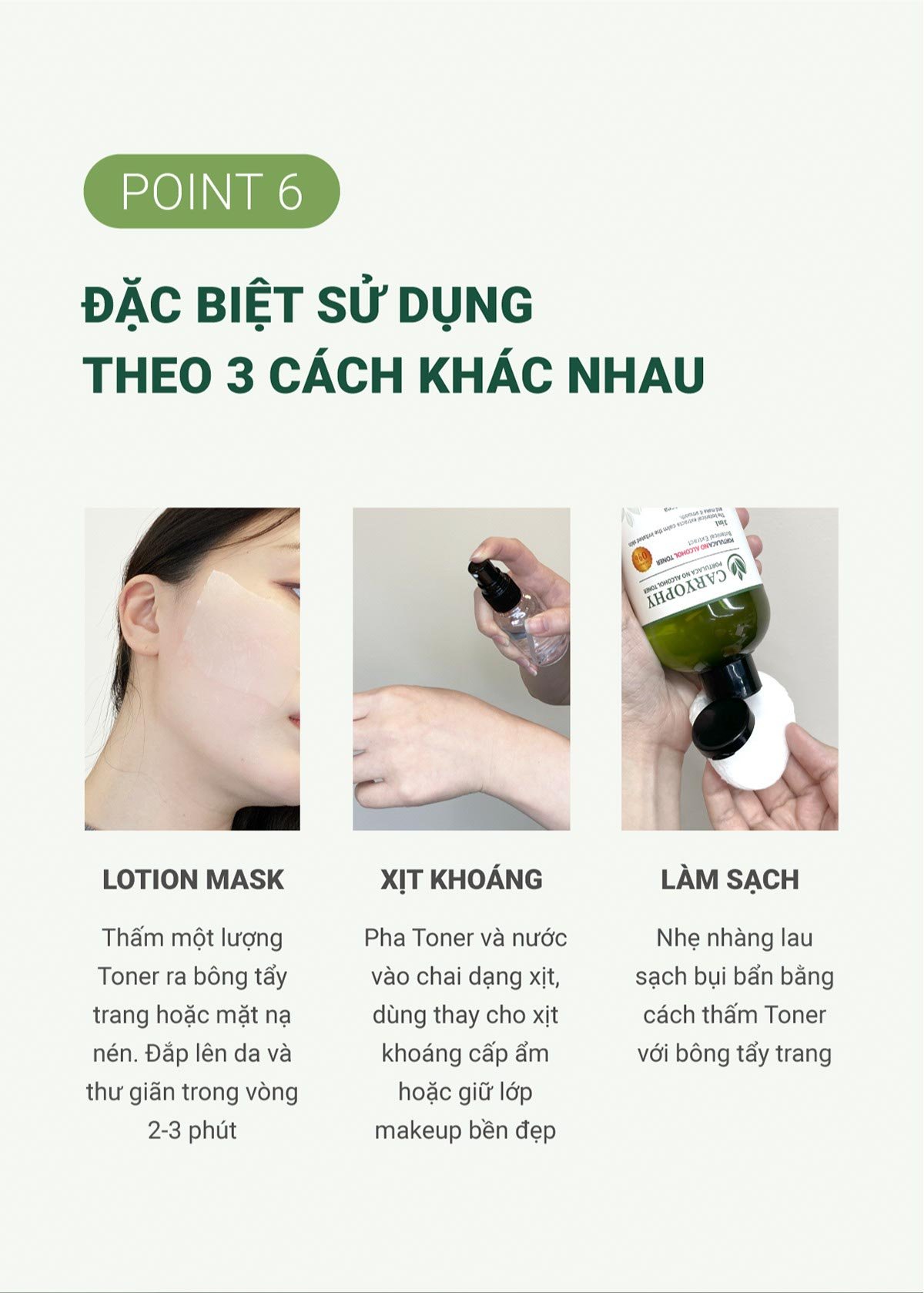 Có thể dùng như xịt khoáng, lotion mask hoặc toner pad, thay thế nhiều sản phẩm chăm sóc da khác, giúp tiết kiệm thời gian mà vẫn mang lại hiệu quả tối ưu.