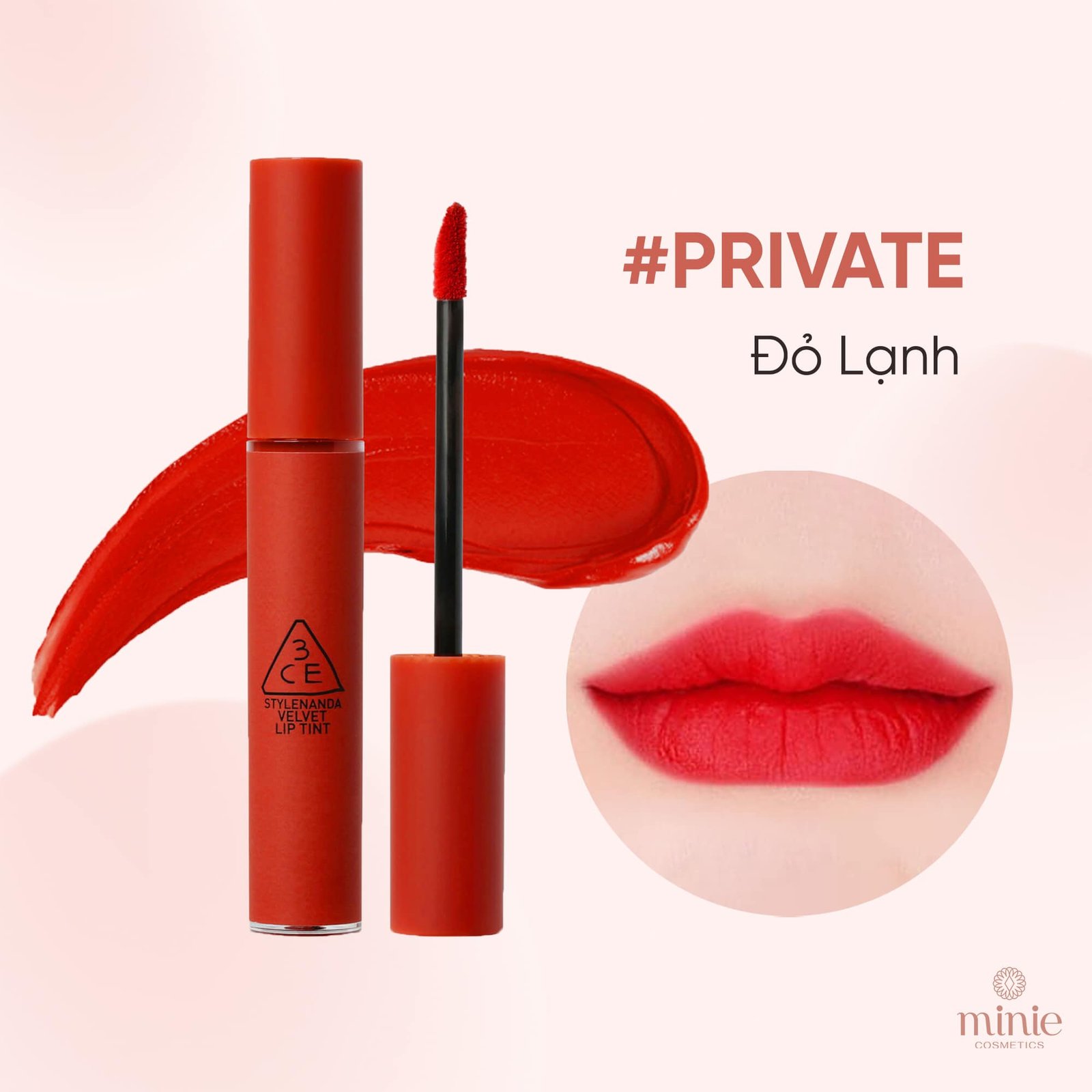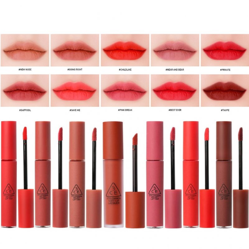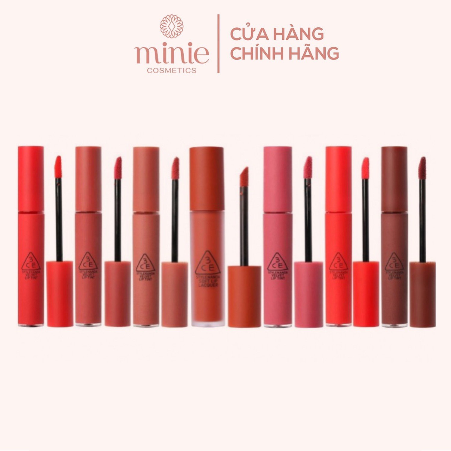 Son Kem Lì, Lên Màu Chuẩn 3CE Velvet Lip Tint là son kem lì thuộc thương hiệu 3CE có chất son cực kì mướt, lướt nhẹ nhàng độ lên màu chuẩn với lớp son cuối trên môi mịn màng như nhung, không gây lộ vân môi. Mặc dù là son lì, bảng màu son bao gồm 10 tông màu trải dài từ các tông màu nude, màu trầm đến các tông màu tươi sáng, rực rỡ. Đây đều là những màu son thời thượng luôn được các tin đồ làm đẹp săn đón.