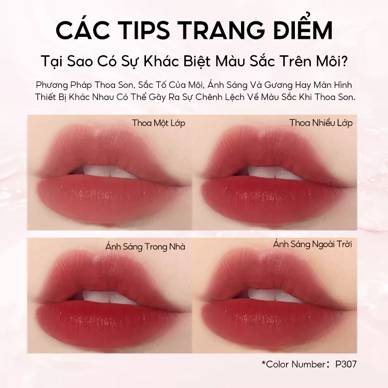 Không sử dụng cùng son dưỡng hoặc sáp dưỡng môi. Đảm bảo môi khô ráo trước khi đánh son để giữ được lớp tint lì mịn như ý.