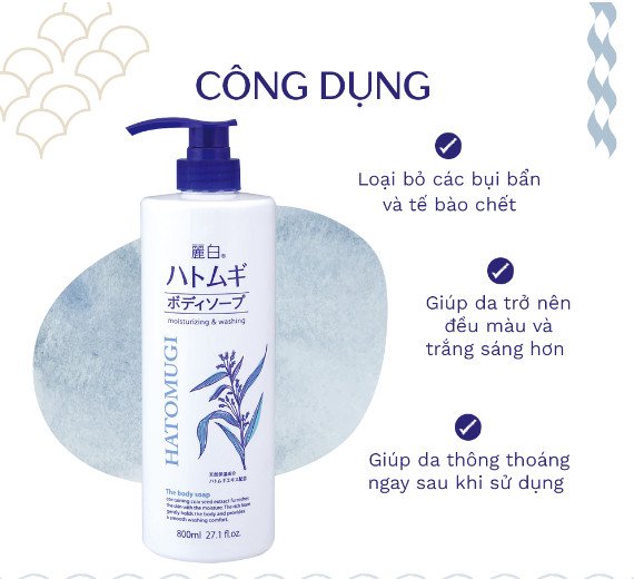 Sữa Tắm Hatomugi Moisturizing & Washing The Body Soap là sữa tắm thuộc thương hiệu Hatomugi với thành phần chính chiết xuất từ hạt Coix giúp làm sạch da một cách nhẹ nhàng, lấy đi tế bào chết giúp da thông thoáng, cung cấp độ ẩm cho da mịn màng, căng mướt, và trắng khỏe từ bên trong, làm dịu và phục hồi làn da bị cháy nắng. Là sản phẩm thường xuyên được các tạp chí đứng đầu tại Nhật Bản bình chọn thuộc top 3 sữa tắm có độ dưỡng ẩm tốt và được khách hàng yêu thích.