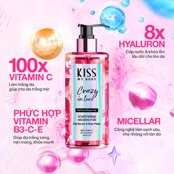 Sữa Tắm Toàn Thân Hương Nước Hoa Kiss My Body Perfume Shower Gel là sản phẩm cao cấp từ thương hiệu Kiss My Body, nổi bật với hương nước hoa quyến rũ. Sử dụng công nghệ Micellar tiên tiến, sản phẩm tạo bọt mịn màng, thấm sâu giúp loại bỏ tế bào chết và làm sạch da hiệu quả. Đồng thời, sữa tắm này duy trì độ ẩm cần thiết, mang lại làn da mịn màng, tươi sáng cùng hương thơm dài lâu, thư giãn.