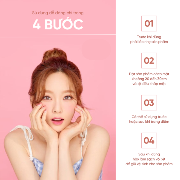 - Sau khi trang điểm: Đặt chai cách mặt khoảng 20-30 cm.